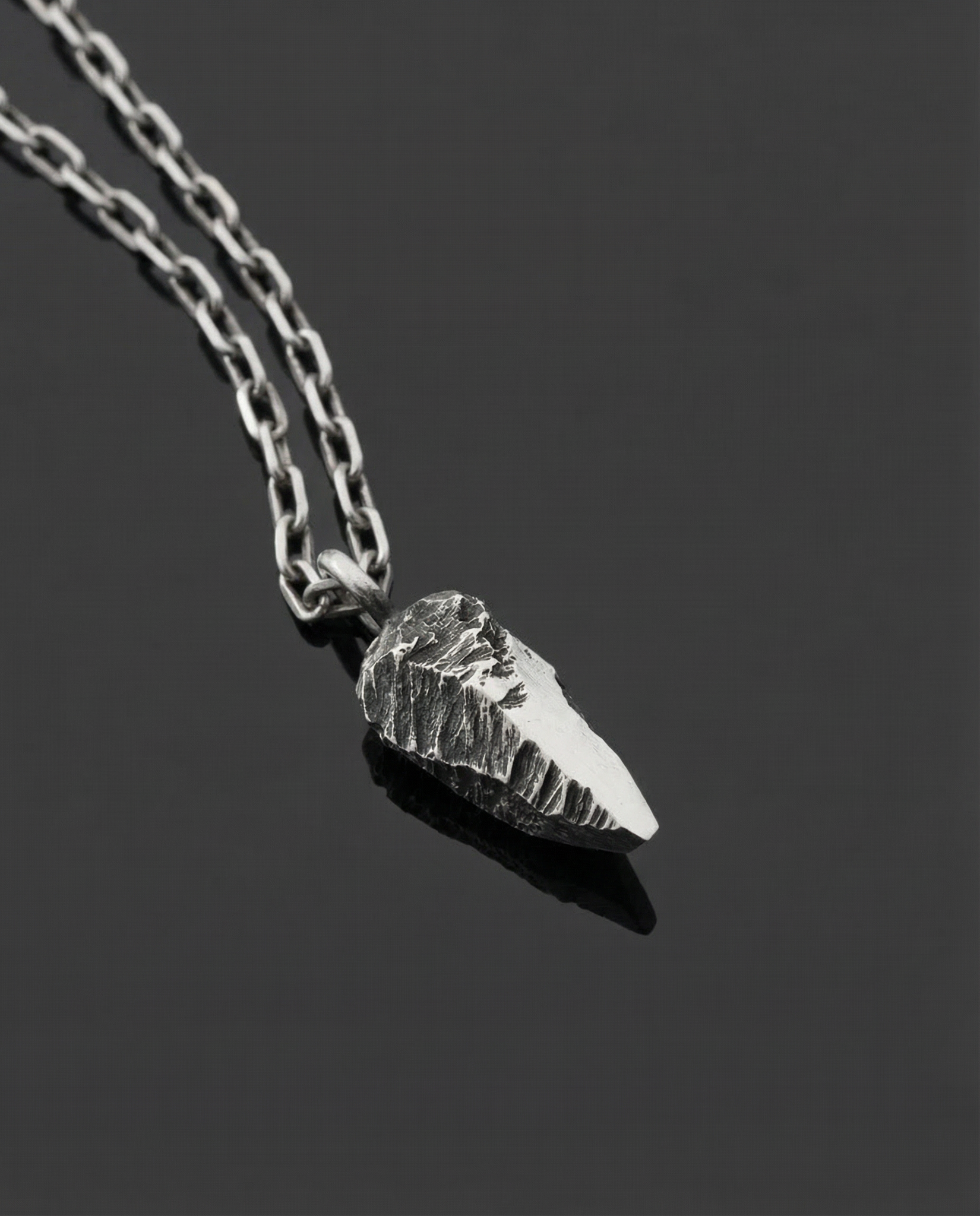 Small, raw, arrowhead inspired pendant with high polished facets.